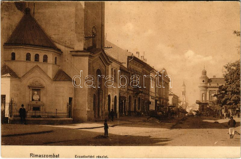 1913 Rimaszombat, Rimavská Sobota; Erzsébet tér, üzletek / square, shops