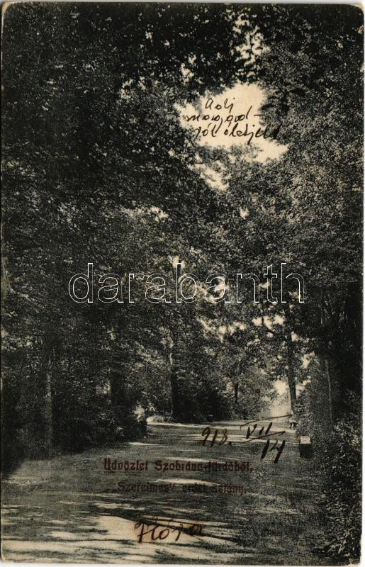1913 Szobránc, Szobráncfürdő, Kúpele Sobrance; "Szerelmes" erdei sétány. Ignáczy Géza fényképész kiadása / romantic forest walkway, promenade (EK)