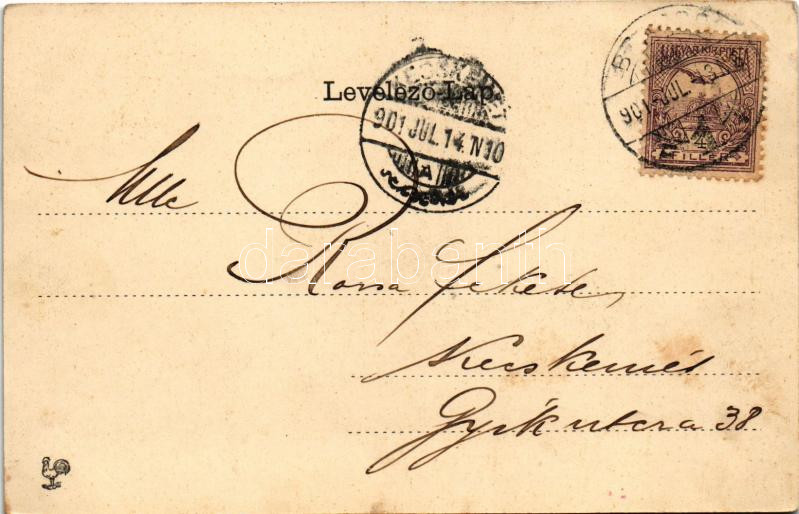 1901 Brassó, Kronstadt, Brasov; látkép. Szecessziós virágos litho kere...
