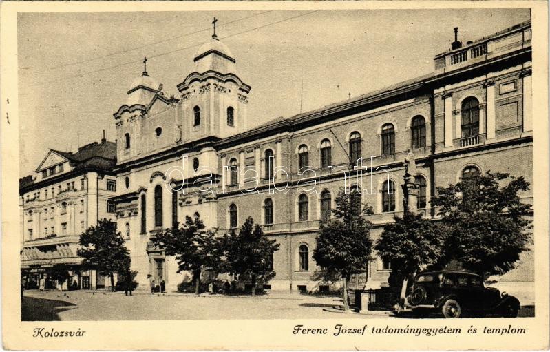 1941 Kolozsvár, Cluj; Ferenc József tudományegyetem és templom, autó / church, university, automobile