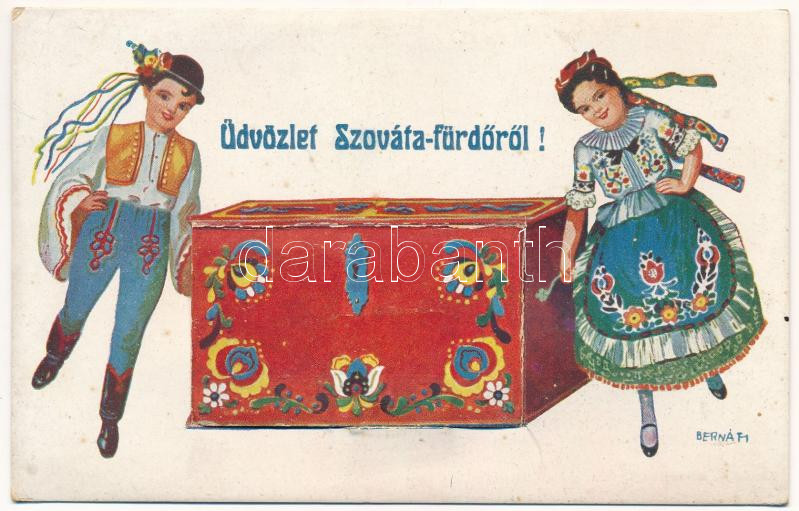 Szováta-fürdő, Sovata; népviseletes leporellólap 10 képpel, Körtési K. fényképész felvételei és kiadása / folklore leporellocard with 10 pictures s: Bernáth