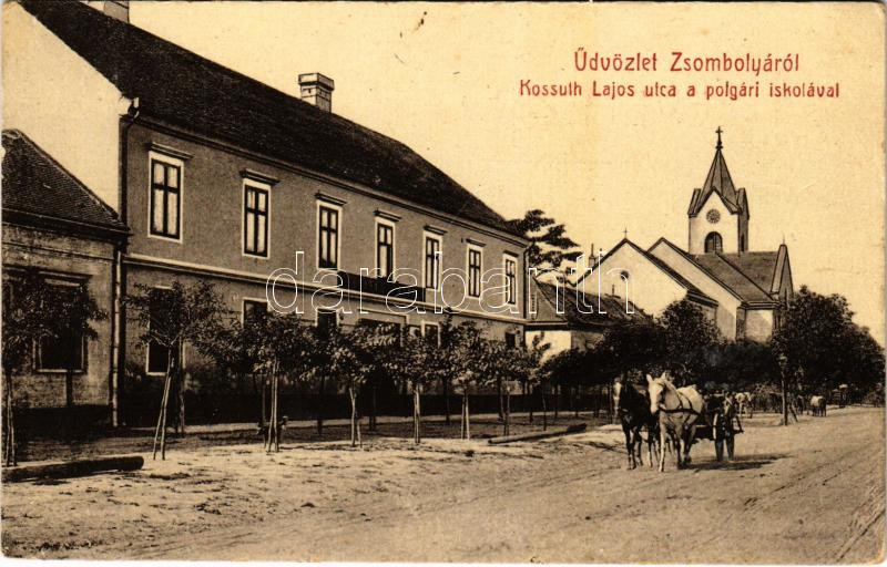 Zsombolya, Hatzfeld, Jimbolia; Kossuth Lajos utca, Polgári iskola. W.L...