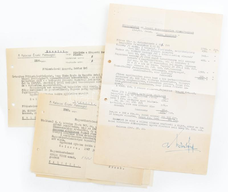 1921-1948 6 db érseki levél aláírásokkal kalocsai papnevelő intézetnek...