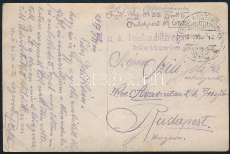 1917 Szili István tüzér, a K.u.K. Feldhaubitzeregiment 32. Batterie 5.... https://www.darabanth.com/en/432-Online-auction/432.0/Art-and-other-collectibles/Military~500031/1917-Szili-Istvan-tuzer-a-KuK-Feldhaubitzeregiment-32-Batterie-5-tabori-agyutarackos-tC3~II2787889