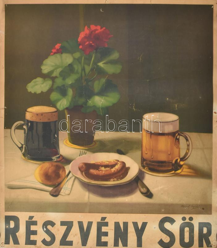 Részvény sör nagy méretű plakát 60x70 cm S: Romek Árpád, tűlyukakkal