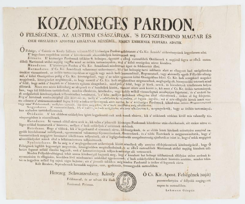 https://www.darabanth.com/en/432-Online-auction/432.0/Art-and-other-collectibles/Printed-Materials~1000002/1814-Kozonseges-pardon-Amnesztia-rendelet-hirdetmenye-46x35-cm~II2778291