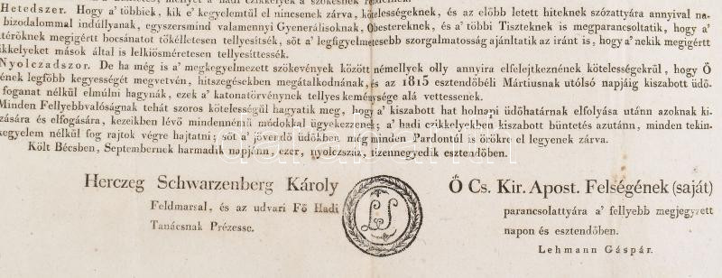 1814 Közönséges pardon - Amnesztia rendelet hirdetménye 46x35 cm