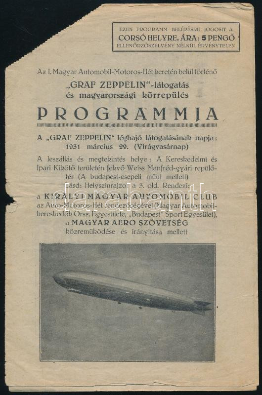 1931 Az I. Magyar Automobilé-Motoros-Hét keretén belül történő Graf Ze... https://www.darabanth.com/en/432-Online-auction/432.0/Art-and-other-collectibles/Printed-Materials~1000002/1931-Az-I-Magyar-Automobile-Motoros-Het-kereten-belul-torteno-Graf-Zeppelin-latogatas-es-~II2788228