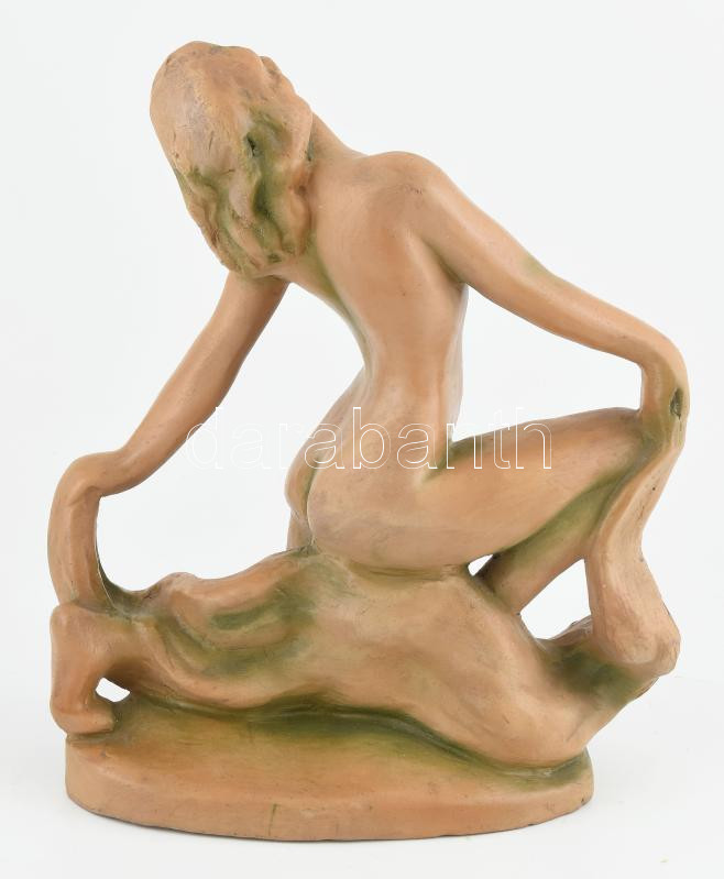 Kőműves László: Art Deco táncos. Terrakotta, jelzés nélkül!!, kopásnyo...