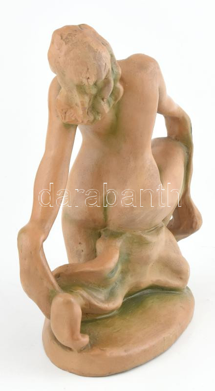 Kőműves László: Art Deco táncos. Terrakotta, jelzés nélkül!!, kopásnyomokkal, 1930 körül, m: 27 cm