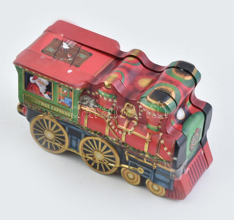 Vasút modell gőzmozdony, tehervagon, 10 mm nyomtávú, mozdony formájú dobozban