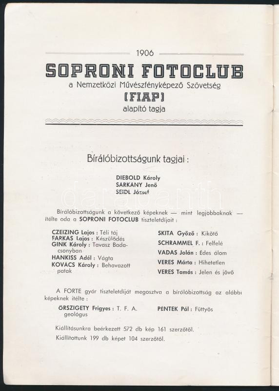 Országos Művészi Fényképkiállítás. Soproni Fotoclub 1955. Kiadói papírkötés, kissé kopottas állapotban.