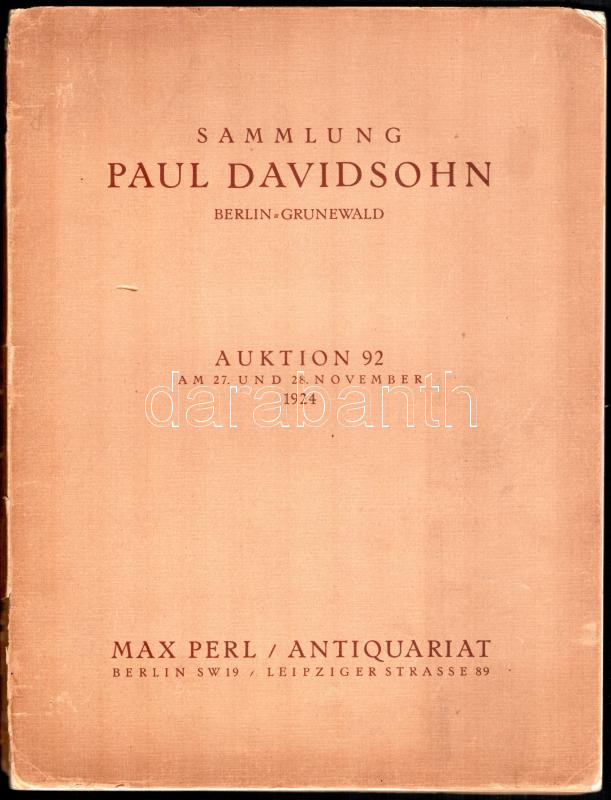 Sammlung Paul Davidsohn Berlin-Grunewald. Auktion 92. Berlin, 1924, Ma... https://www.darabanth.com/en/432-Online-auction/432.0/Books/Books-Architecture-Art~1000018/Sammlung-Paul-Davidsohn-Berlin-Grunewald-Auktion-92-Berlin-1924-Max-Perl-Buch-und-Kunstantiquar~II2777526