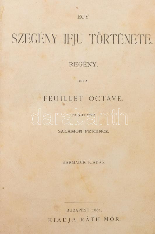 Feuillet Octave: Egy szegény ifju története. Ford.: Salamon Ferenc. Ha... https://www.darabanth.com/en/432-Online-auction/432.0/Books/Books-Other-rarities~1000037/Feuillet-Octave-Egy-szegeny-ifju-tortenete-Ford-Salamon-Ferenc-Harmadik-kiadas--A-kis-gr~II2780112