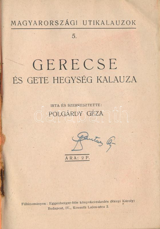 Polgárdy Géza: Gerecse és Gete hegység kalauza. Bp., Eggenberger. Kiadói papírkötés, kissé kopottas állapotban.