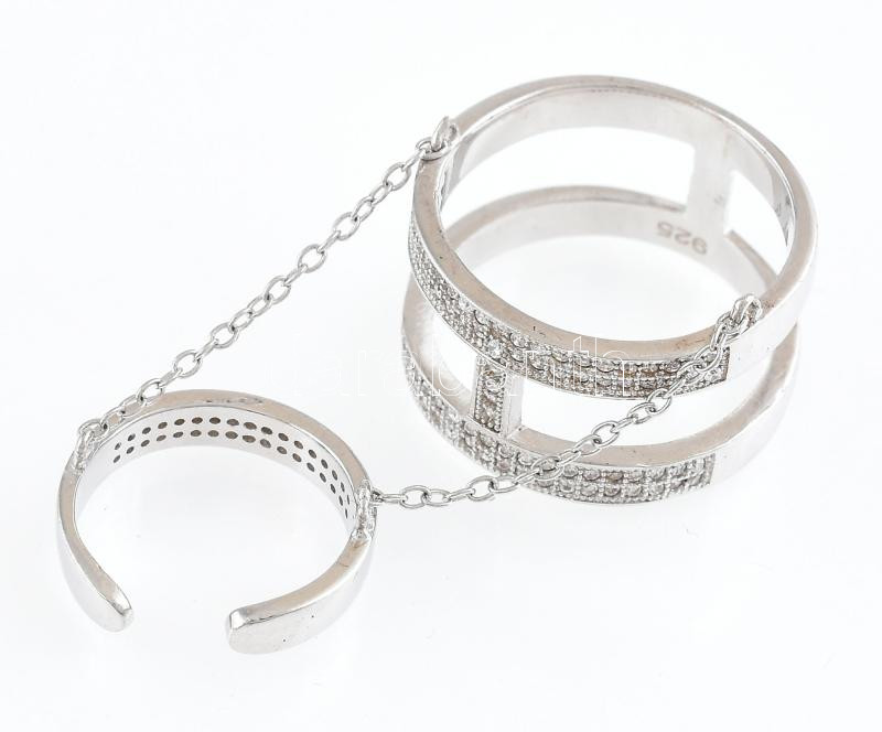 Ezüst (Ag) dupla gyűrű, kövekkel, jelzett, bruttó: 7,97g
