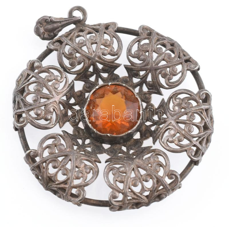 Ezüst (Ag) köves medál, jelzett, d: 3,5 cm, bruttó: 5,6g