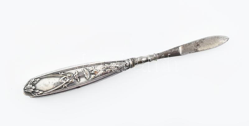 Ezüst (Ag) nyelű levélbontó, jelzés nélkül, kis horpadás, h: 11 cm