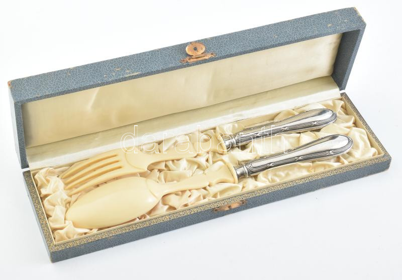 Ezüst (Ag) nyelű salátás, jelzett, dobozban, h: 27 cm