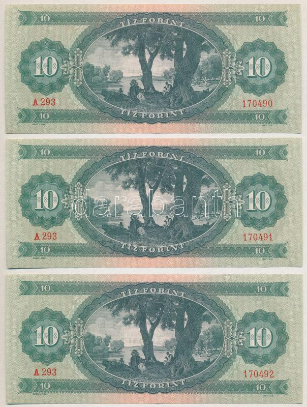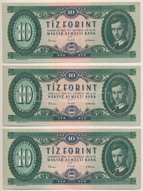 1962. 10Ft (3x) sorszámkövetők "A 293 170490 - A 293 170492" T:II