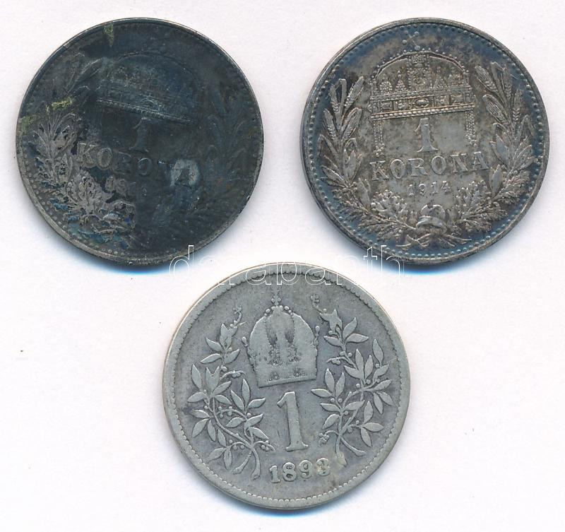 Hungary 1914KB 1 Korona Ag "Ferenc József" (2x) + Austria 1893. 1 Corona Ag "Franz Joseph" C:XF-F patina
