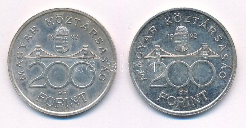 1992. 200Ft Ag "MNB" (2x) T:1-,2 patina Adamo F13