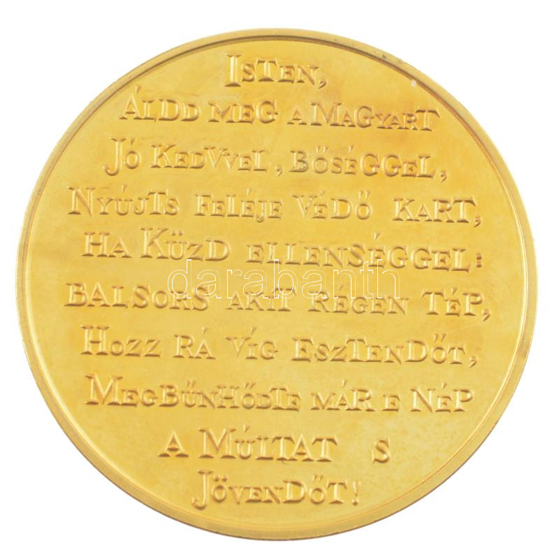 1996. "Magyarország halma - Millenium 1896 - A Honfoglalás emlékére 1996" aranyozott Cu emlékérem, hátlapon a Himnusz első soraival (42,5mm) T:1