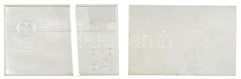 2019. "Magyar Pénzverő Zrt. 2019. / Látogatói érem" érvénytelenített (kettévágott) fém plakett (a két darab együtt 42,52g/60x40mm) + DN A Pénzverő látogatói érmének veretlen lapkája (42,72g/60x40mm) T:2