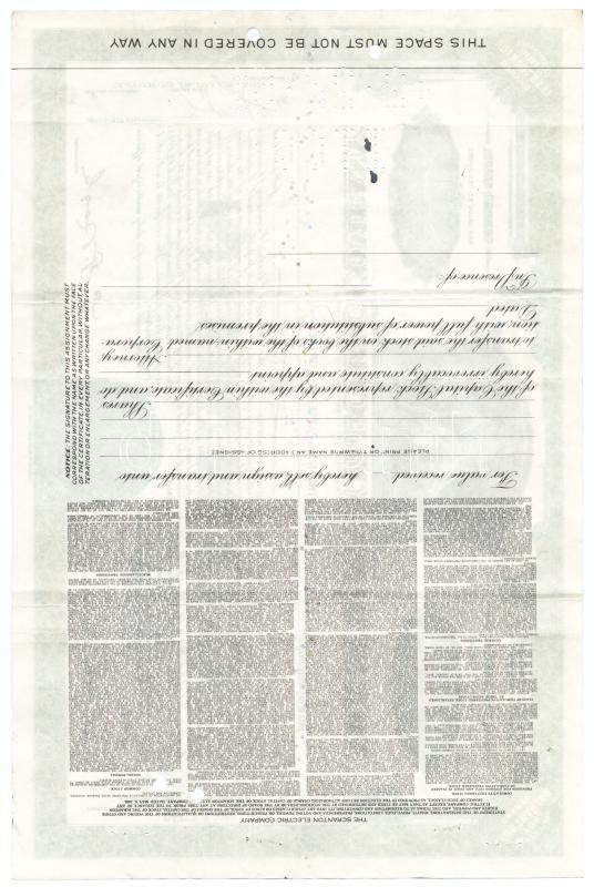 Description: Amerikai Egyesült Államok 1946. "The Scranton Electric Company" húsz névre szóló részvénye egyben T:III