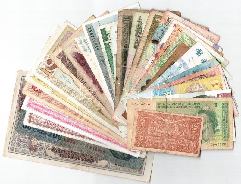 Description: 31 db-os vegyes külföldi bankjegy tétel T:III közte ragasztott, szakadt, szép papír