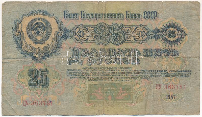 https://www.darabanth.com/en/432-Online-auction/432.0/Numismatics/Worldwide-banknotes~1500014/Szovjetunio-1947-25R-TIII-IV-Soviet-Union-1947-25-Rubles-CVG-G-Krause-P23228~II2777840