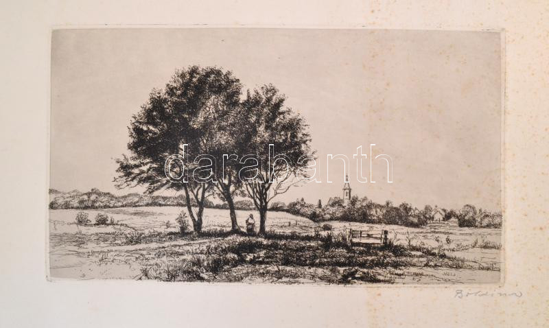 Boldizsár István (1897-1984): Táj. Rézkarc, jelzett, hátoldalán Rézkar...