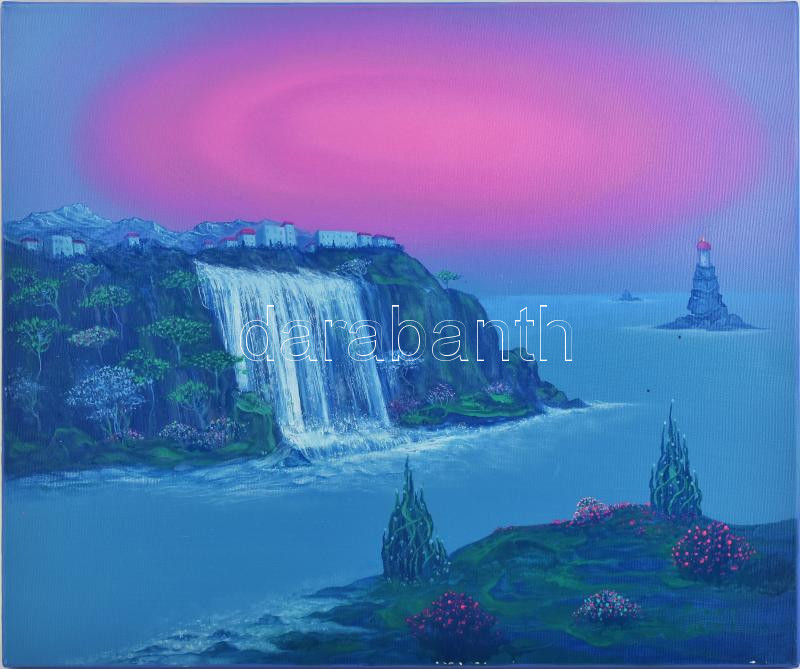 David Beeri (1951-): Jelzőtorony. Olaj, vászon. Jelezve jobbra lent, a hátoldalán autográf felirattal. 50x60 cm
