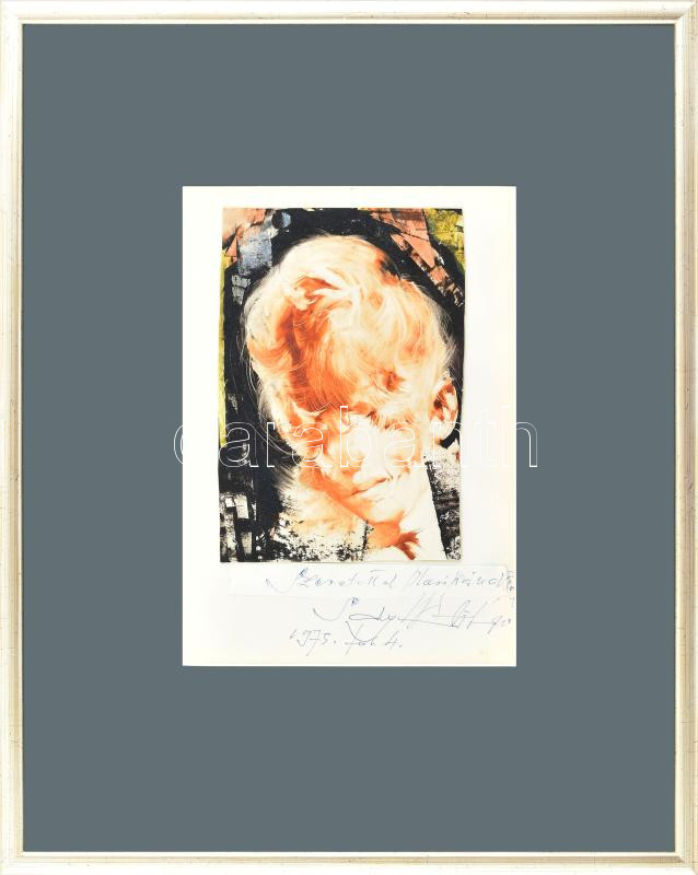 Description: Saly Németh László (1920-2001): Női portré, olaj, papír, jelzett, Saly Németh László autográf ajándékozási soraival 1975-ből. Üvegezett fakeretben, 22×15 cm