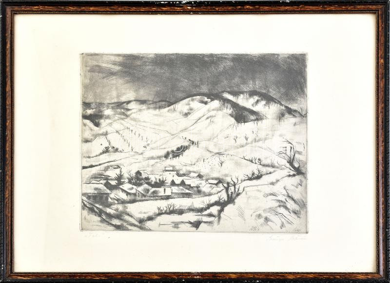 Szőnyi István (1894-1928): Tél (Zebegény). Rézkarc, papír, jelzett, üv...