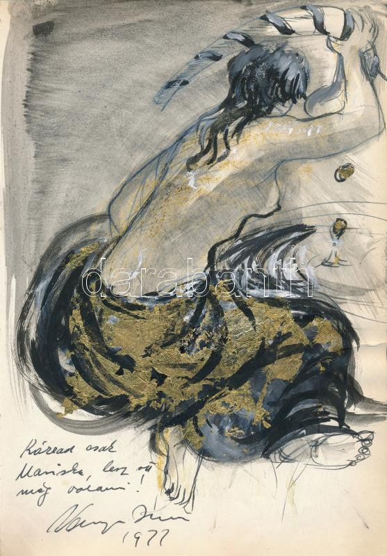 Varga Imre (1923-2016): Női akt, 1970-es évek. Vegyes technika, papír. Jelzett, Varga Imre autográf ajándékozási soraival. 30x21 cm.