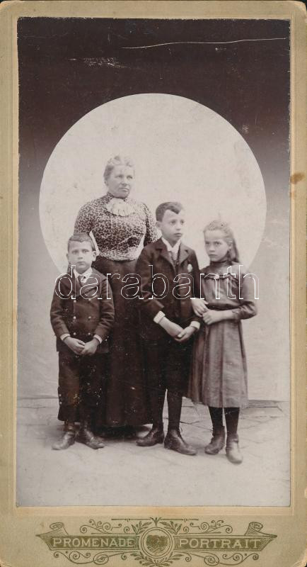 1903 Nő gyermekeivel, keményhátú fotó, felületi karcolással, 20,5×11 c...