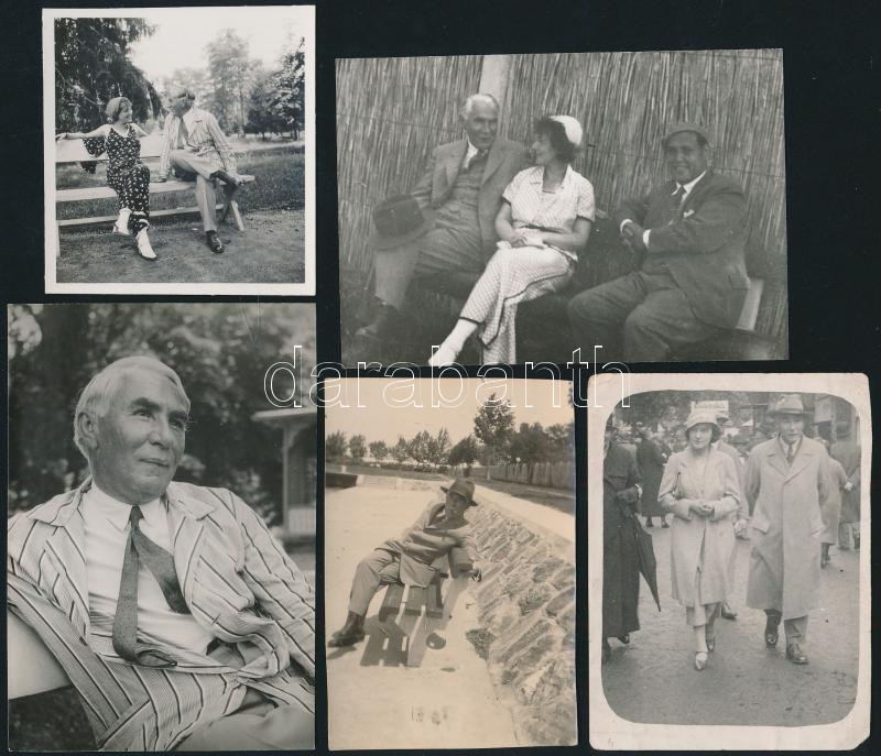 Móra Ferenc (1879-1934) írót ábrázoló fotók, 5 db + névjegykártya sajk...