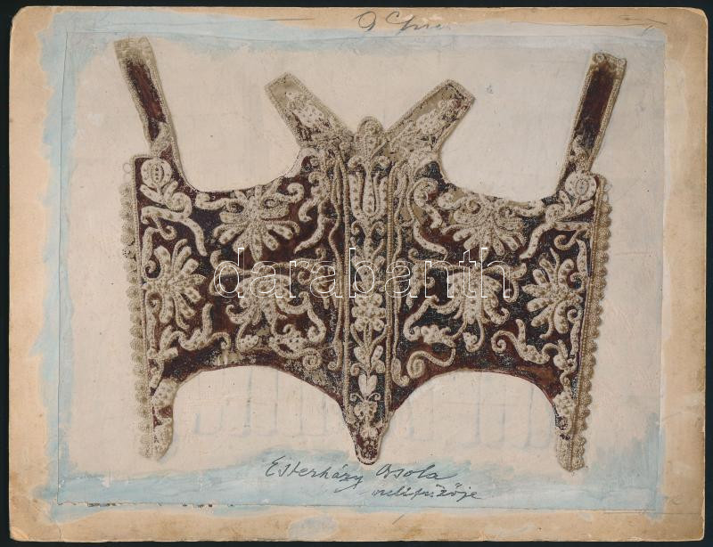 cca 1890 Esterházy Orsolya fűzőjéről készült kézzel retusált fotó, kartonra ragasztva, 17,5×21 cm