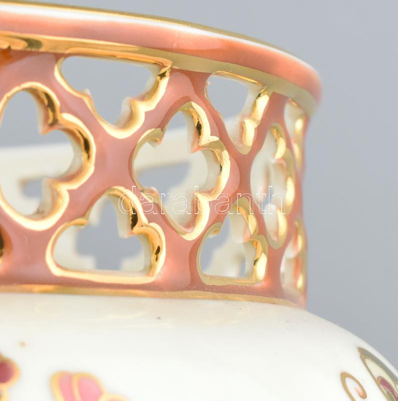 Zsolnay porcelán pillangó mintás áttört kaspó. Kézzel festett, jelzett...