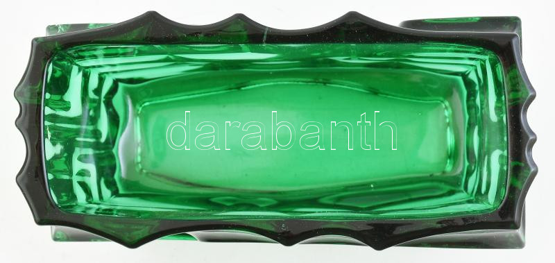 Vladislav Urban retró design zöld üveg váza, jelzés nélkül, néhány hajszálrepedéssel, 18,5x8,5x12 cm