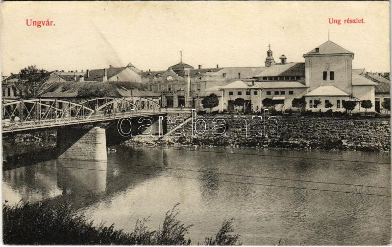 Ungvár, Uzshorod, Uzhhorod, Uzhorod; Ung részlet, híd, Hotel Korona sz...