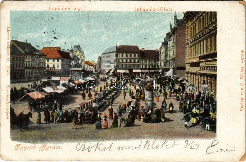 1902 Zagreb, Zágráb; Jelacsis tér / Jelacicev trg. / piac tér, vásár /...