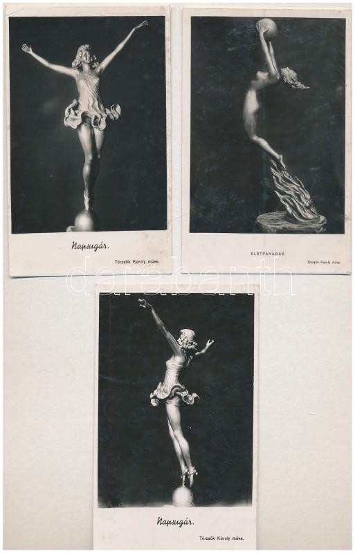 3 db RÉGI motívum képeslap: Törzsök Károly szolidan erotikus szobrai / 3 pre-1945 motive postcards: gently erotic sculptures