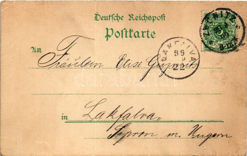 1899 (Vorläufer) Annaberg i. Erzgebirge, Annaberg-Buchholz; Aussichtsturm a. d. Pöhlberg, Ruine Schreckenberg / lookout tower, castle ruins, dwarves. Kunstanstalt Rosenblatt Art Nouveau, floral, litho (EB)