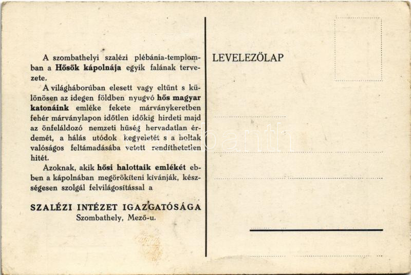 https://www.darabanth.com/en/432-Online-auction/432.0/Postcards/Hungary~2000005/Szombathely-Szalezi-plebaniatemplomban-a-Hosok-kapolnaja-egyik-falanak-tervezete-EK~II2781240