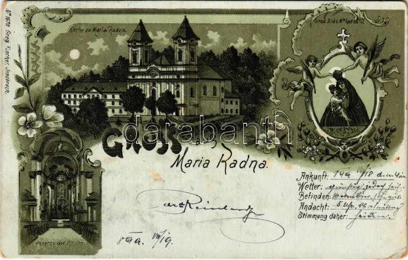 1899 (Vorläufer) Máriaradna, Radna; templom, belső, kegyelemkép / church interior. Greg Fischer No. 1670. Art Nouveau, floral, litho (EK)