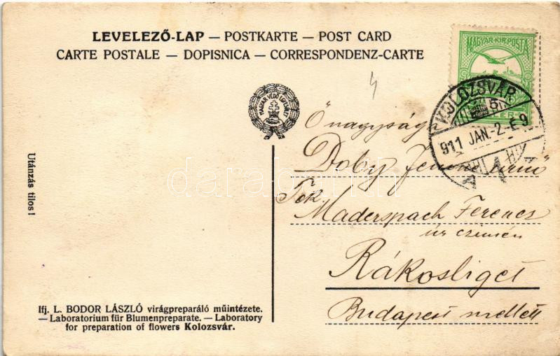 1911 Kolozsvár, Cluj; Ifj. L. Bodor László virágpreparáló műintézete /...