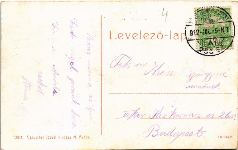 Description: 1912 Máriaradna, Radna (Lippa, Lipova); Maros folyó vashídja. Csauscher József kiadása 3018. (W.L. ?) / Eisenbrücke über Maros-Fluss / Mures river, bridge + "VÖRÖSTORONY - BUDAPEST 255. SZ. A" vasúti mozgóposta bélyegző (EK)