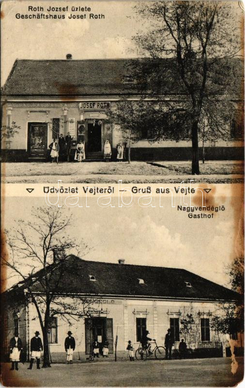 1916 Vejte, Vojtek, Voiteg; Roth József üzlete, Nagyvendéglő, étterem / Geschäftshaus, Gasthof / shop and restaurant (fl)